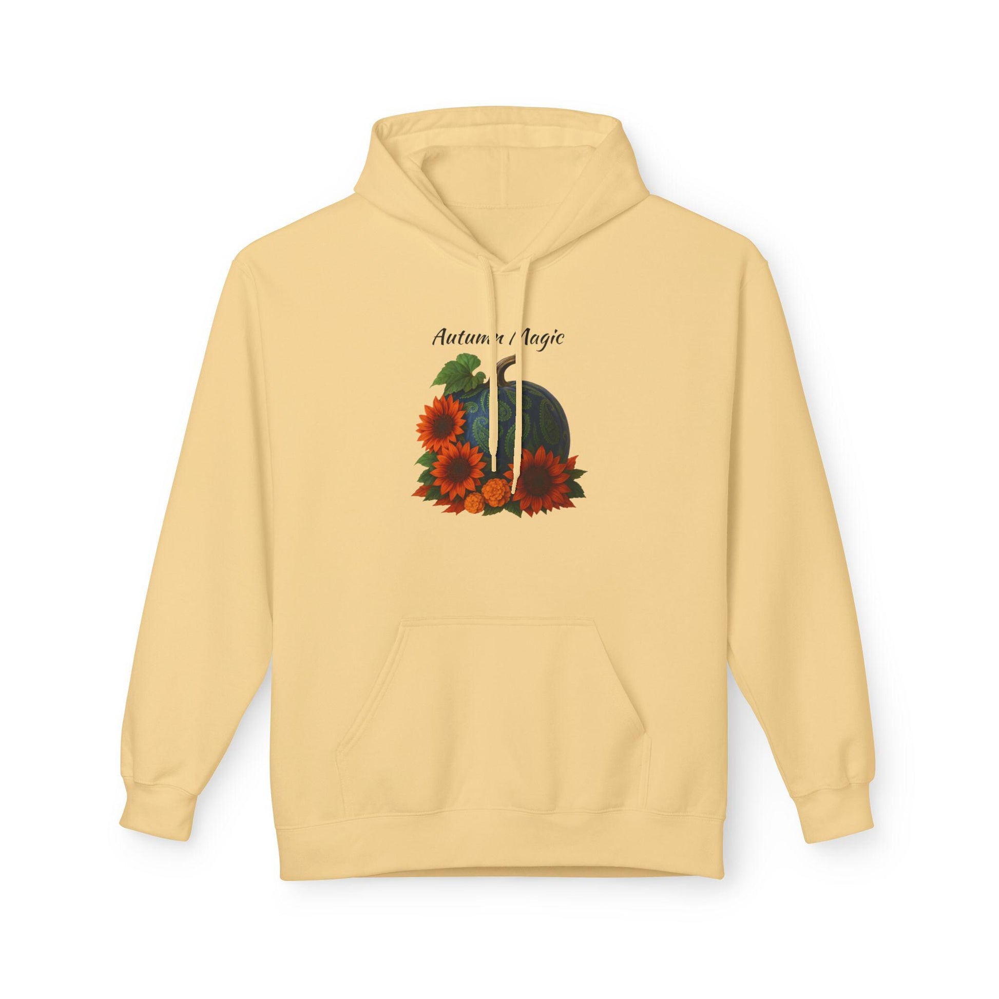 Stay cozy and stylish with this Autumn Vibes Fleece Hoodie, perfect for fall fashion. This unisex sweatshirt is a warm layering piece that exudes a comfortable and relaxed vibe. Ideal for those who enjoy the changing seasons and want to stay cozy during the harvest season. -