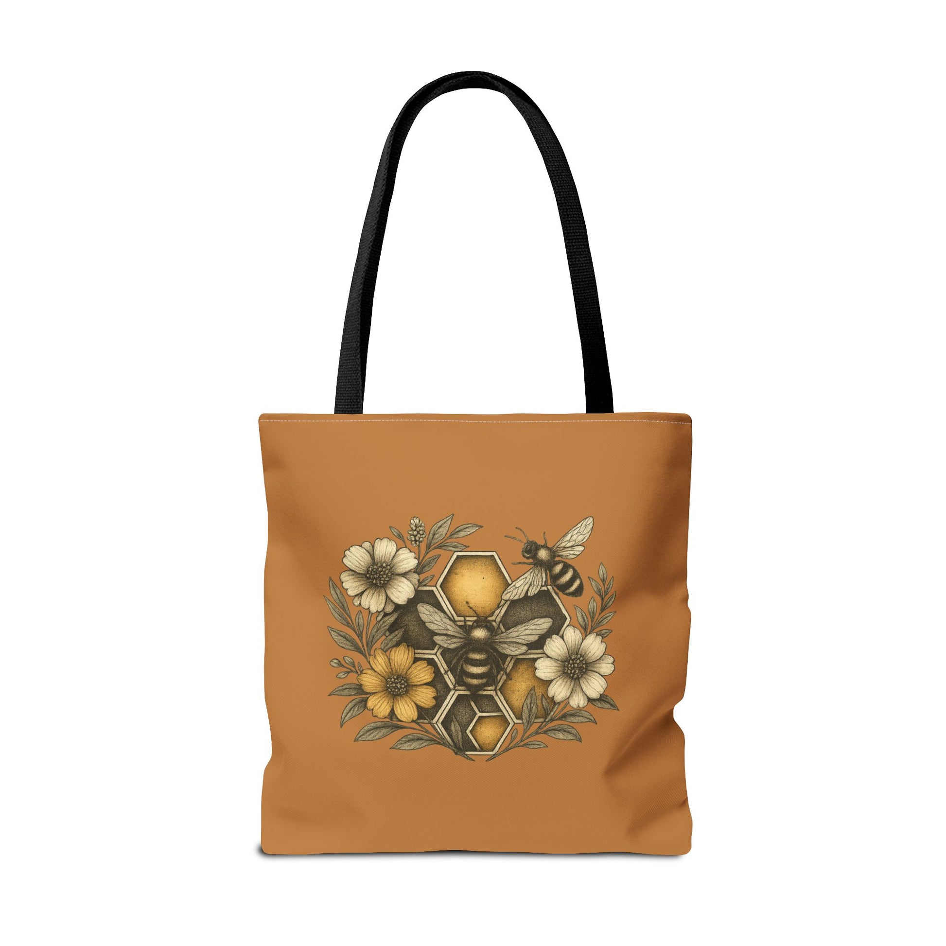 Bee & Honeycomb Tote Bag, Botanical Wildflower Hive Design, Autumn Bee Lover Gift, Bee-Inspired Floral Tote Bag, Geometrical Shaped design