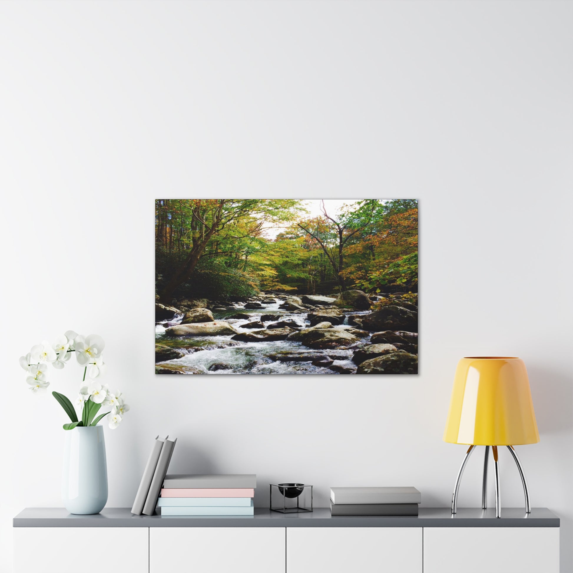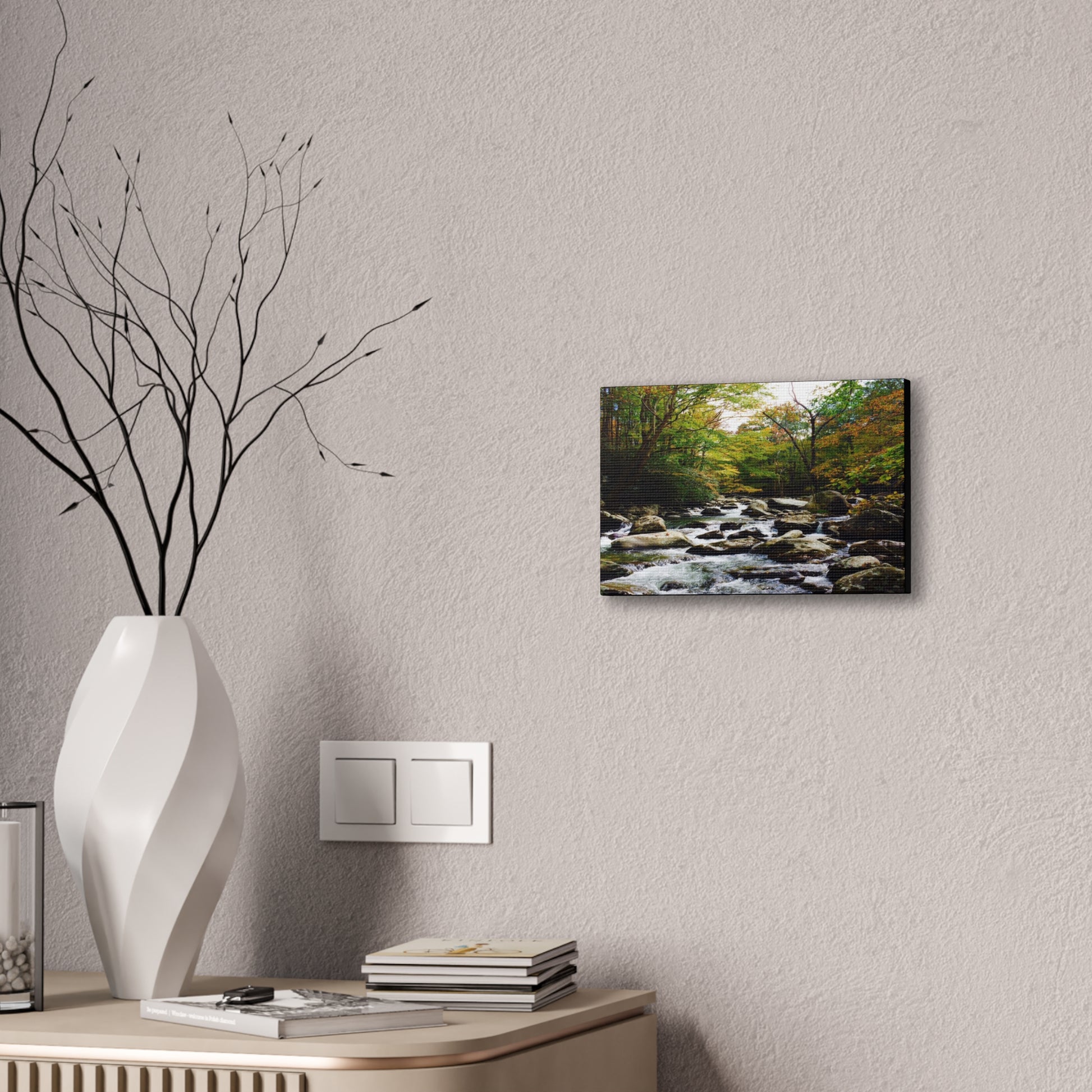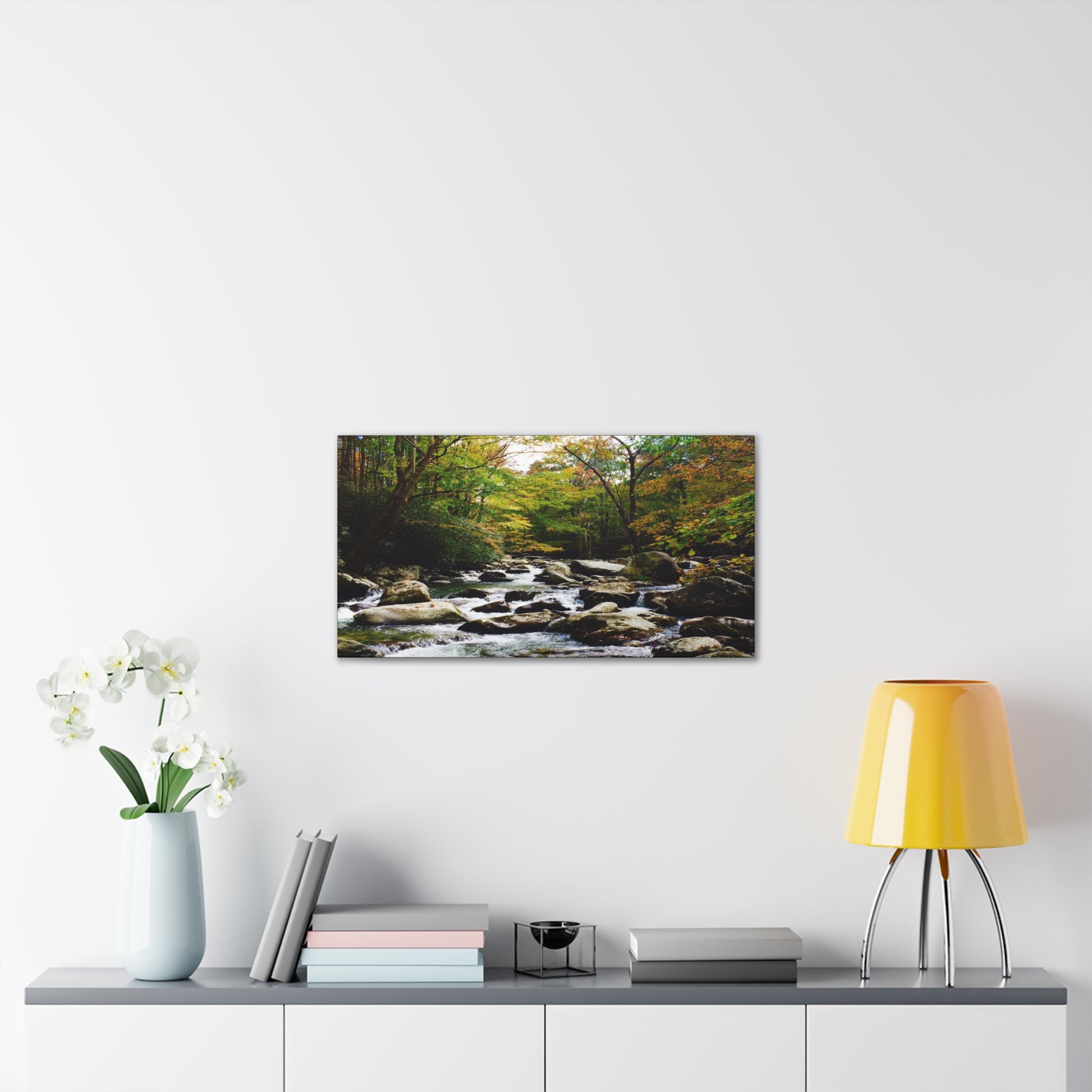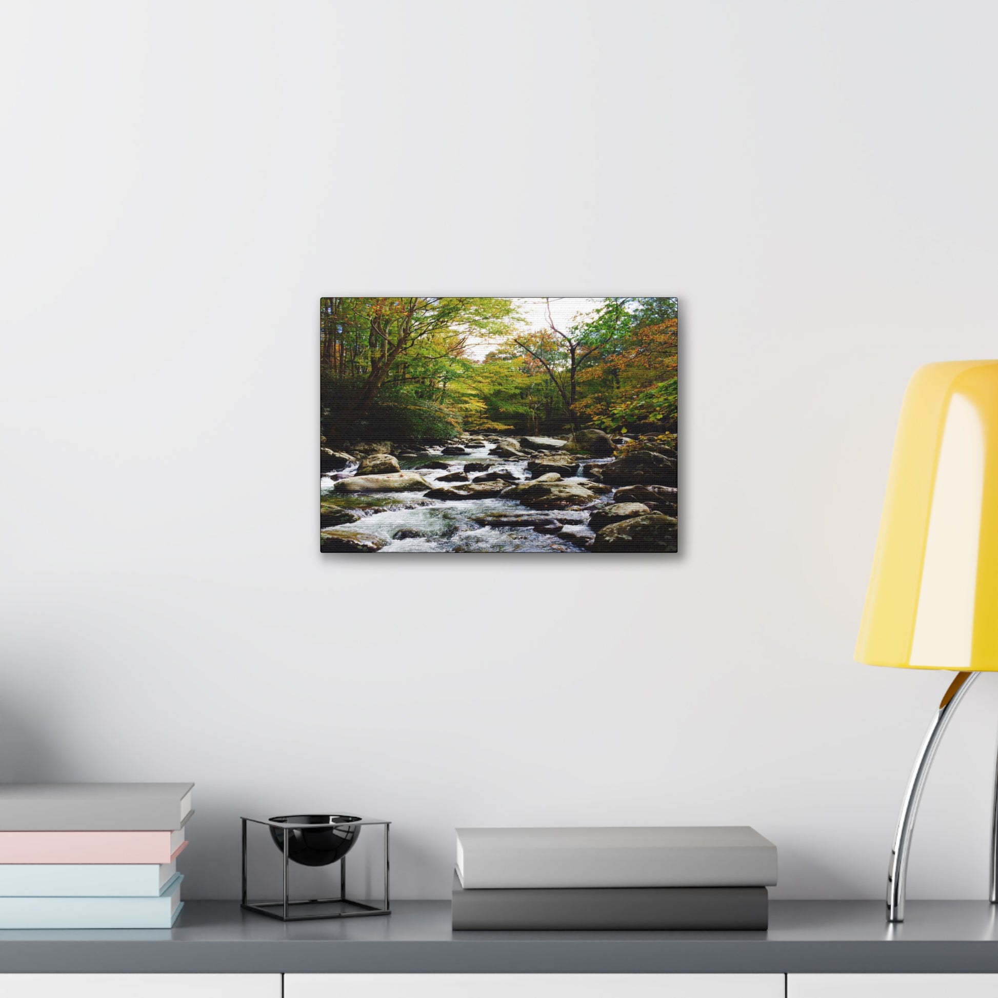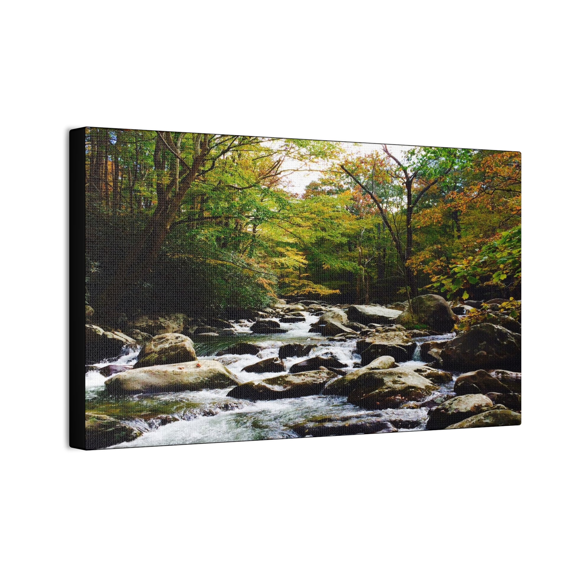 Autumn forest landscape print on stretched canvas — rustic wall décor for nature lovers and Smoky Mountain fans.