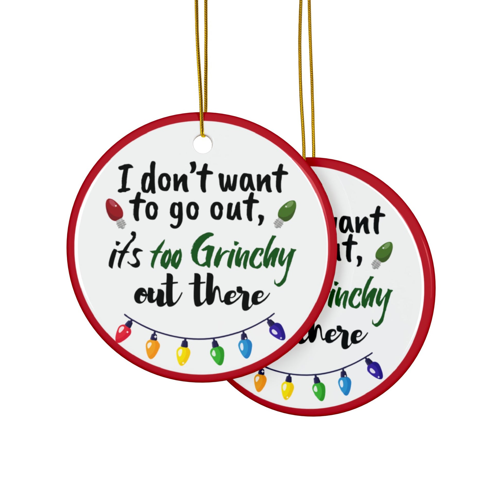 “I don’t want to go out… it’s too Grinchy out there!” For everyone who loves the holidays—but not the crowds. This witty ceramic ornament adds a dash of humor to your Christmas tree or makes the perfect gift for cozy homebodies and festive introverts alike.