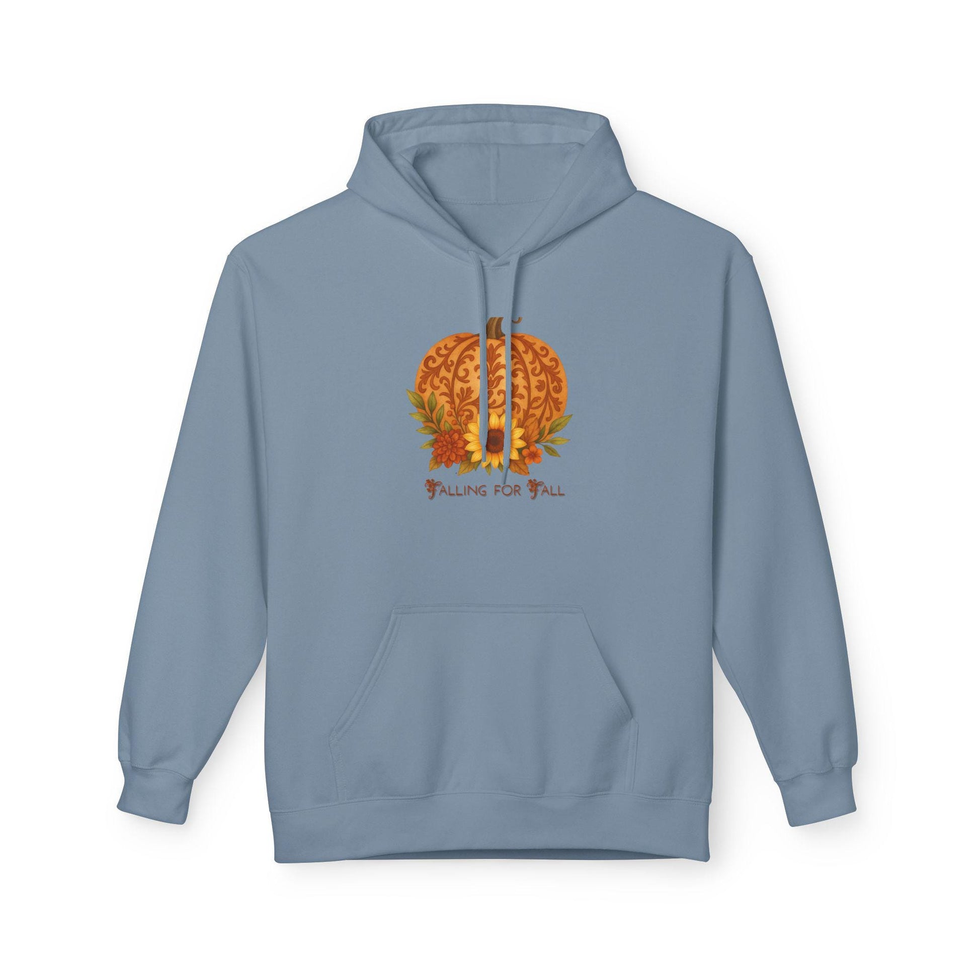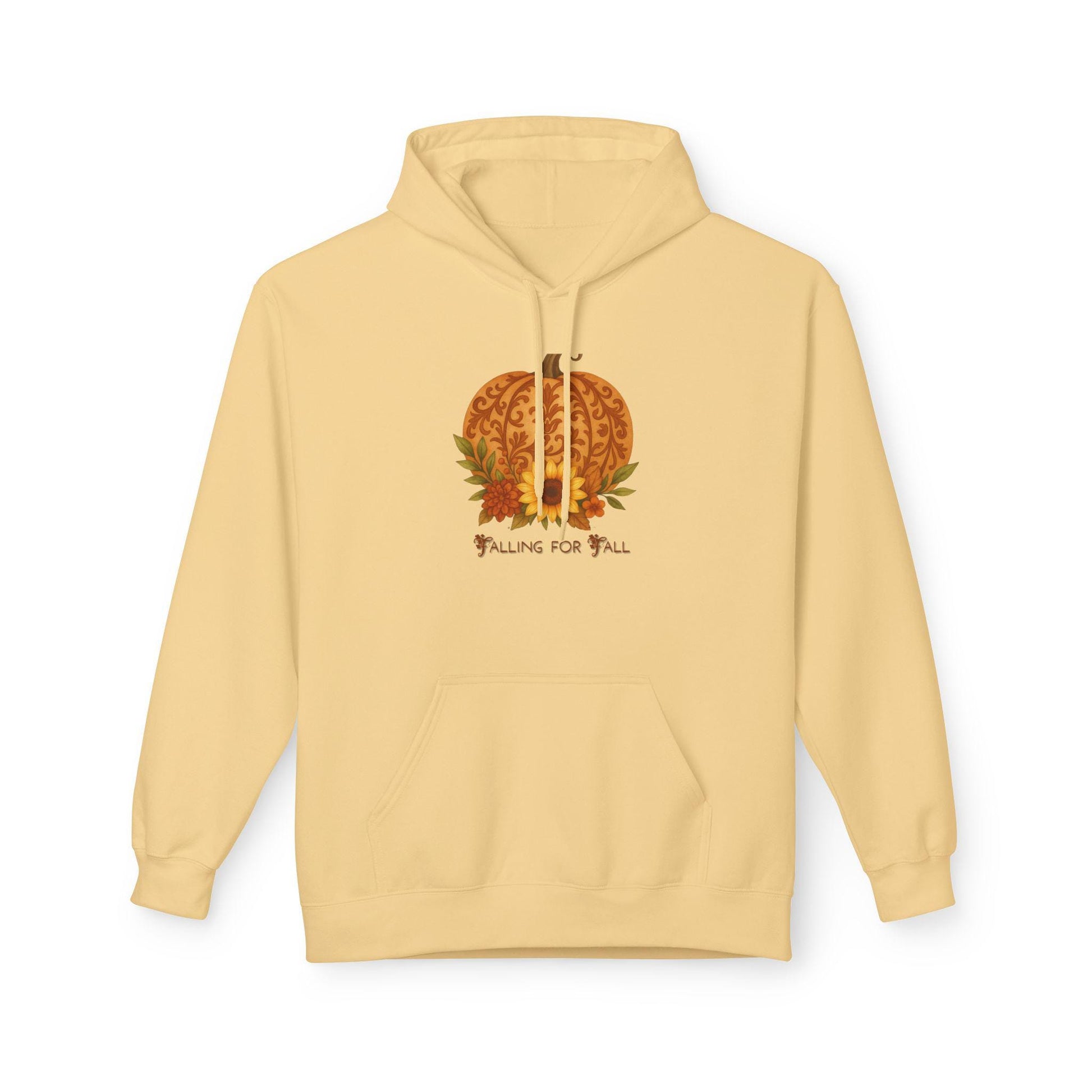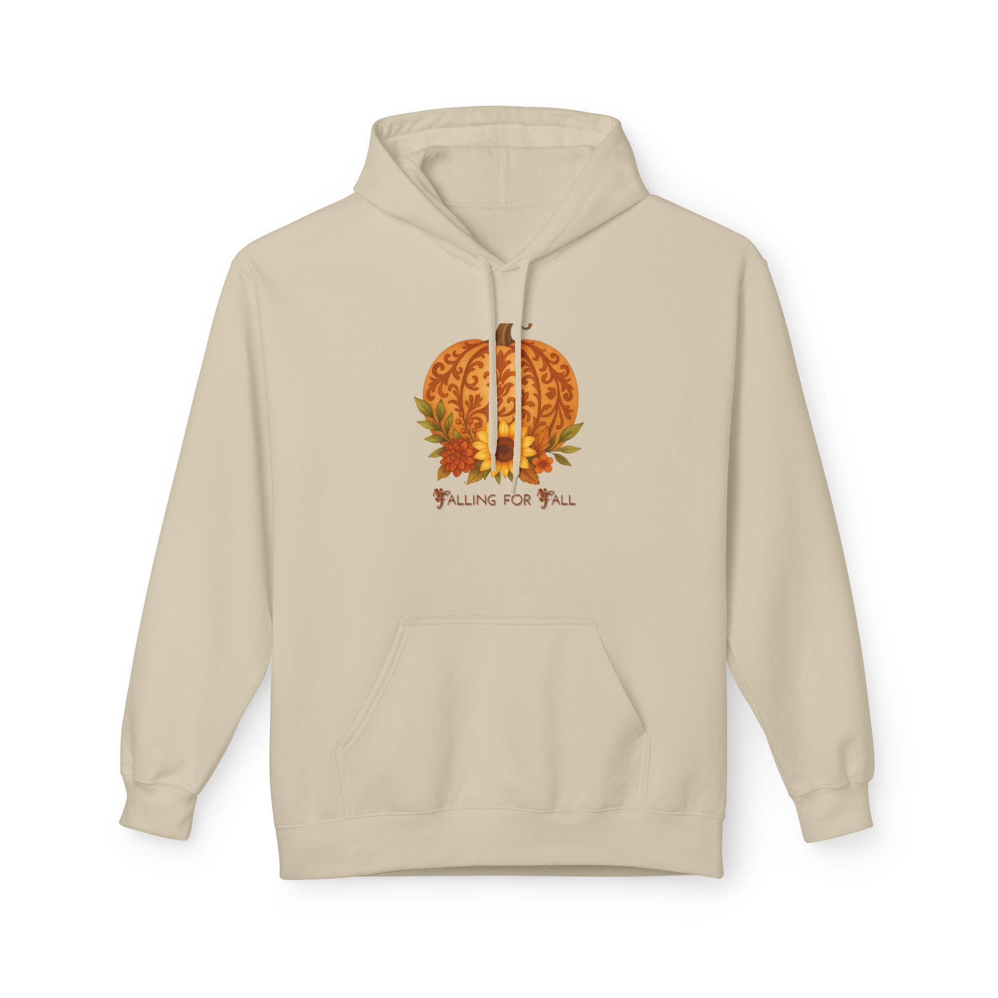 Falling For Fall Cozy Fleece Hoodie, perfect for chilly days with a classic fit. Ideal for casual lounge wear, providing comfort and style. Relevant for fall season and cozy nights in by the fire.