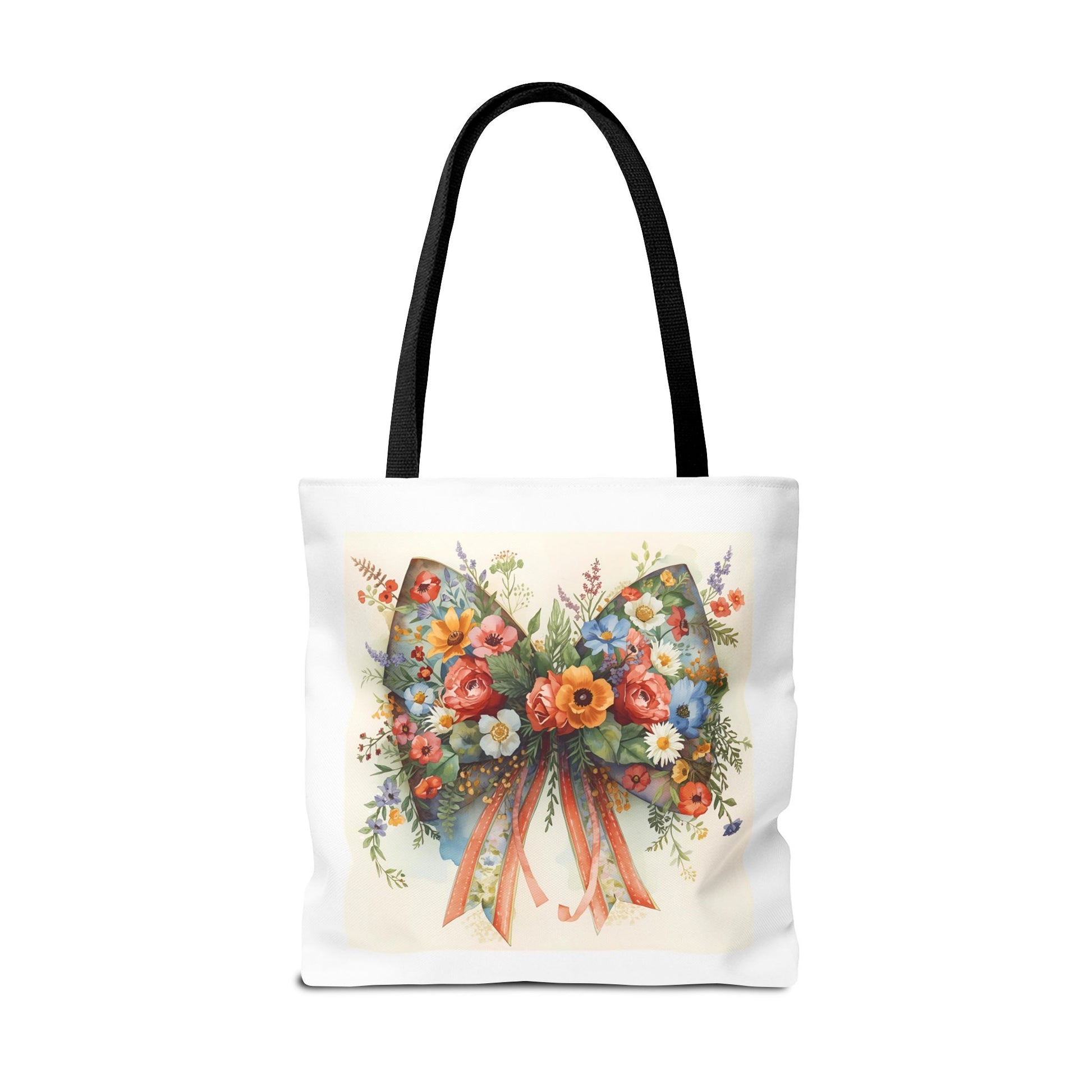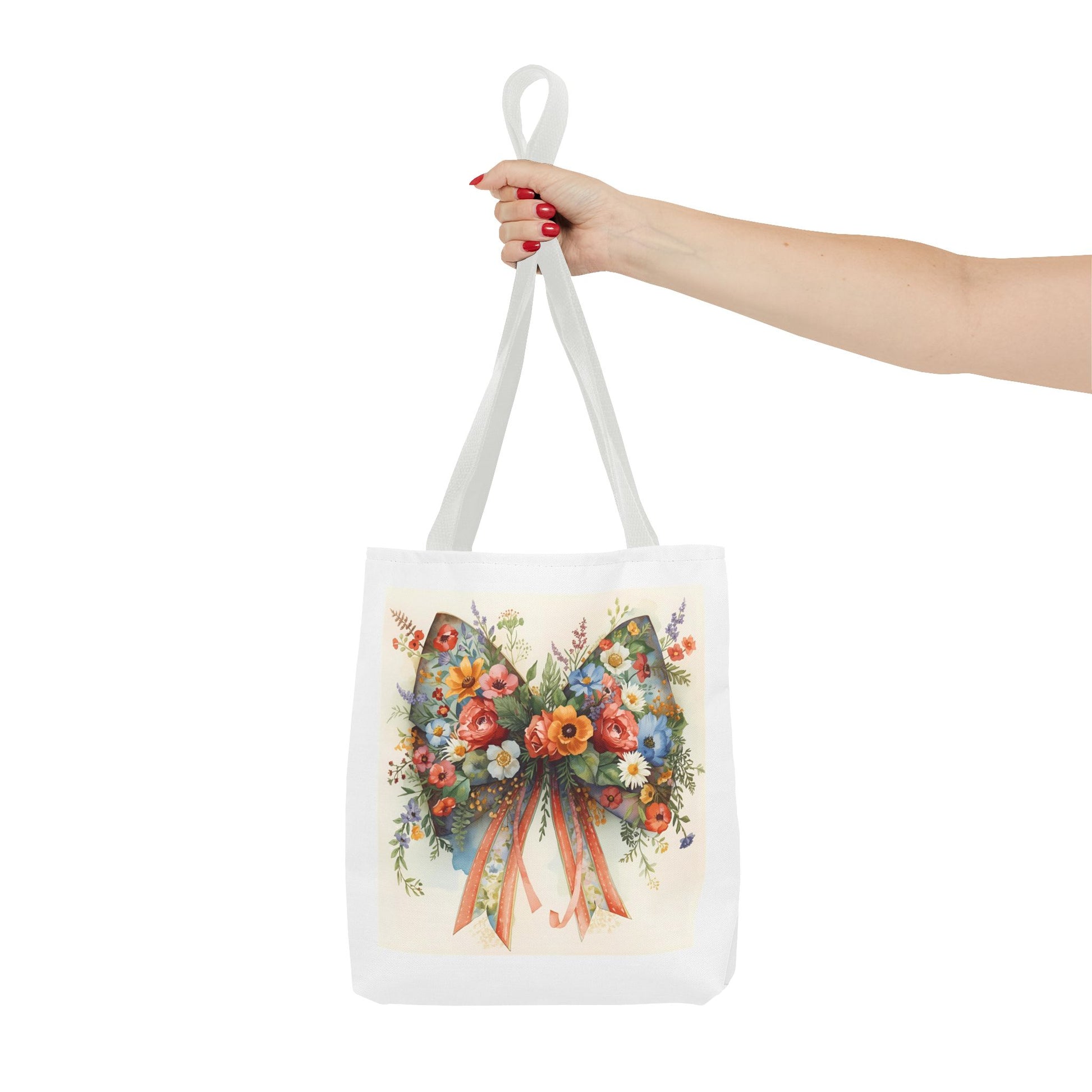 Chic Floral Tote Bag perfect for everyday use, featuring a stylish floral bow design. This reusable shopping bag is a cute gift for her, adding a touch of elegance to any outfit. Ideal for women who love floral patterns and seek a practical yet fashionable accessory. Suitable for birthdays, Mother's Day, or as a thoughtful gift for any occasion.