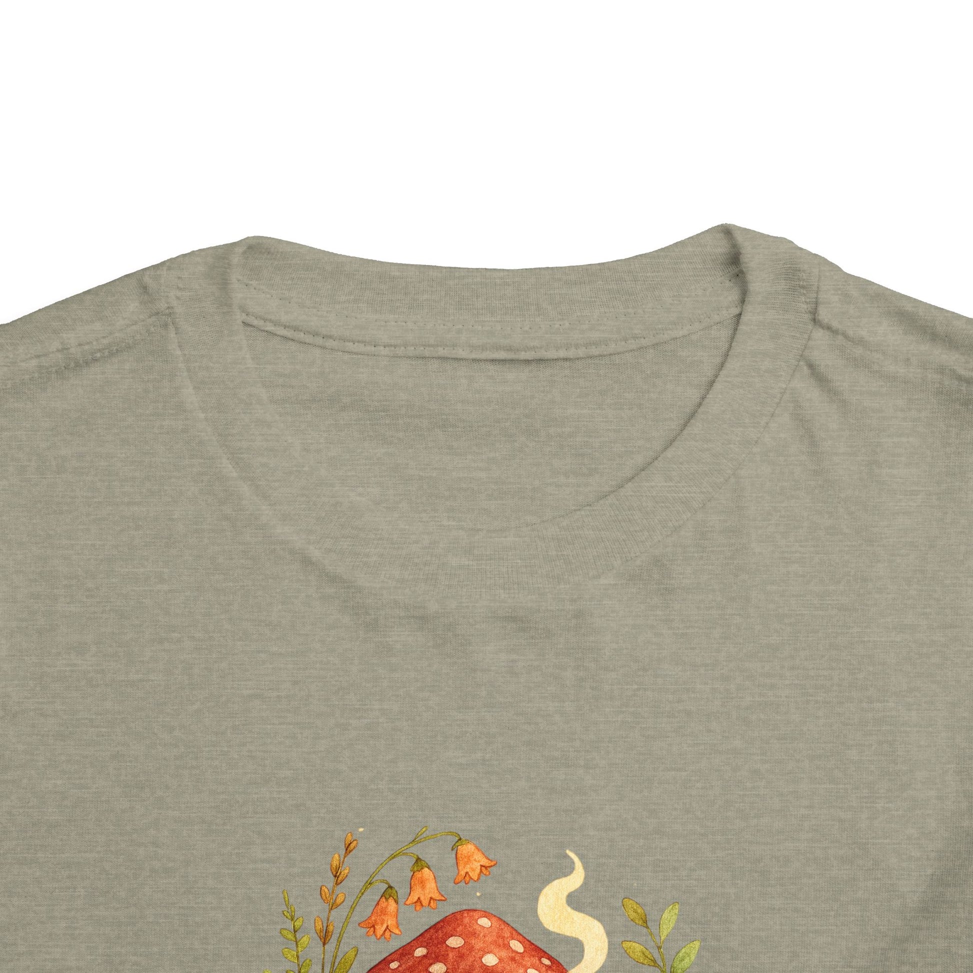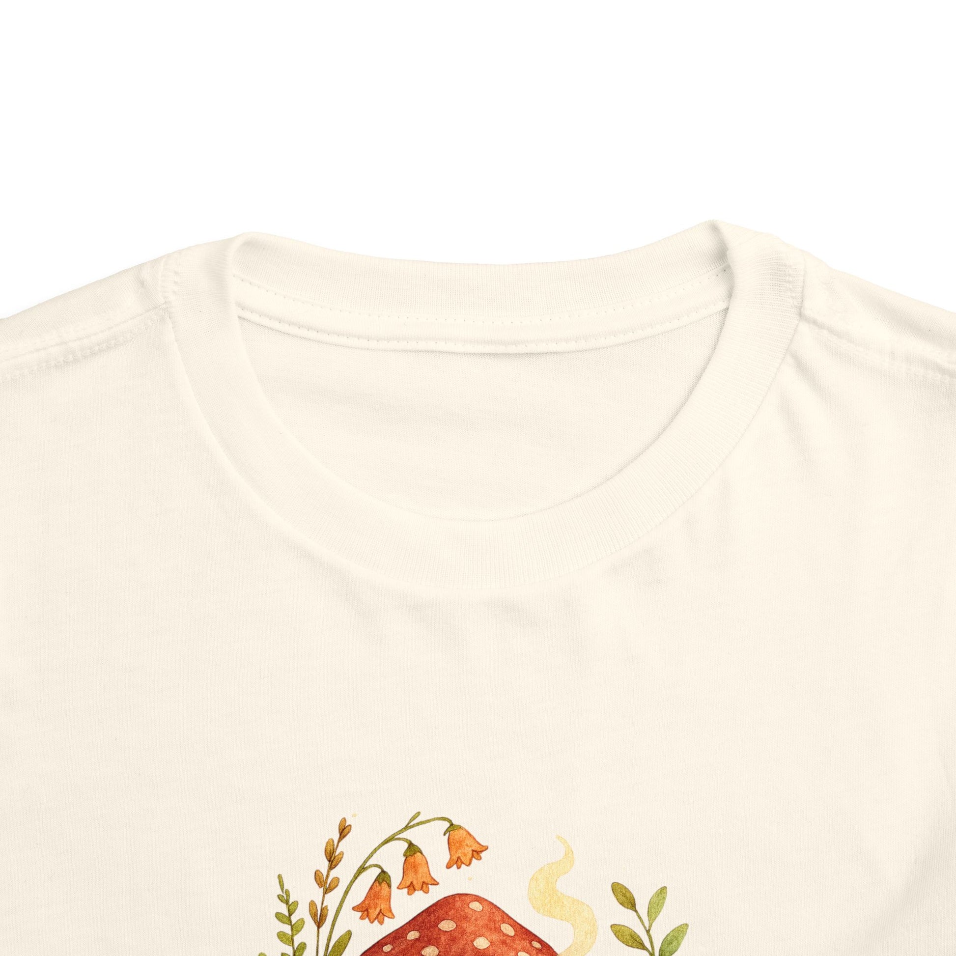 Tiny woodland moments stitched into a soft toddler tee. This lightweight shirt features an illustrated hedgehog tucked beneath a toadstool, warm autumn tones, and gentle foliage details that invite curiosity and quiet play.