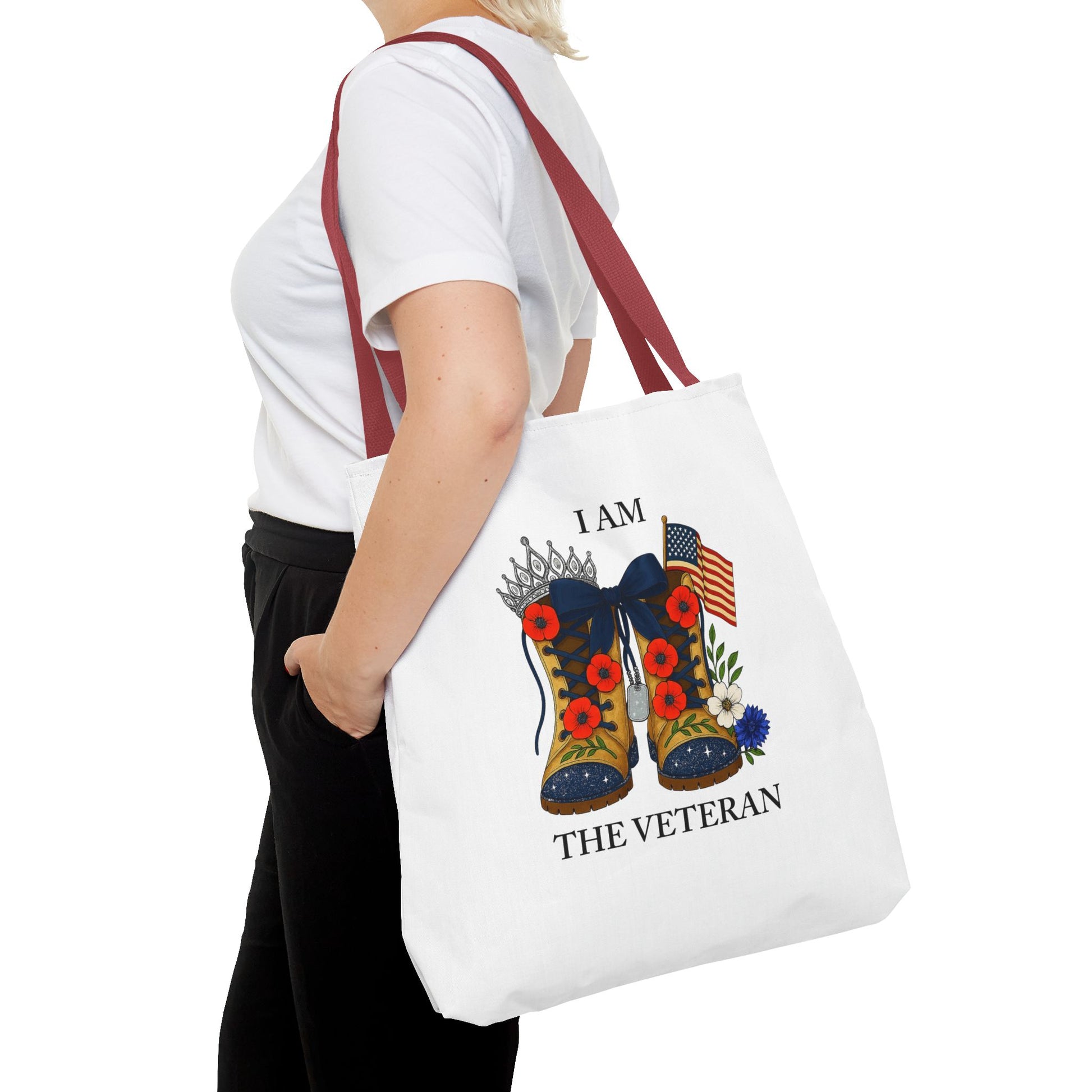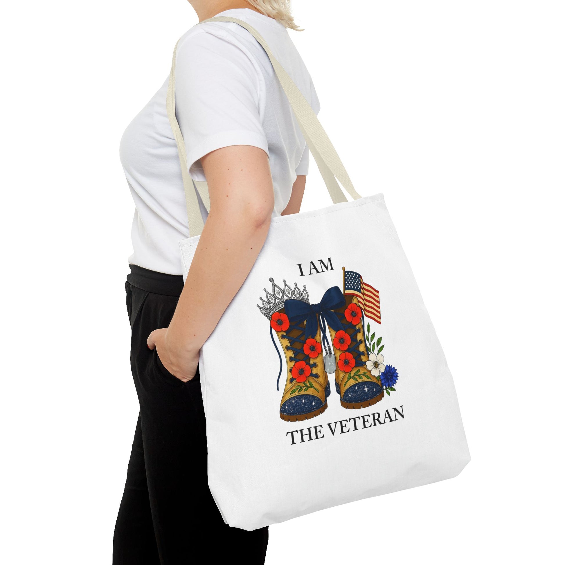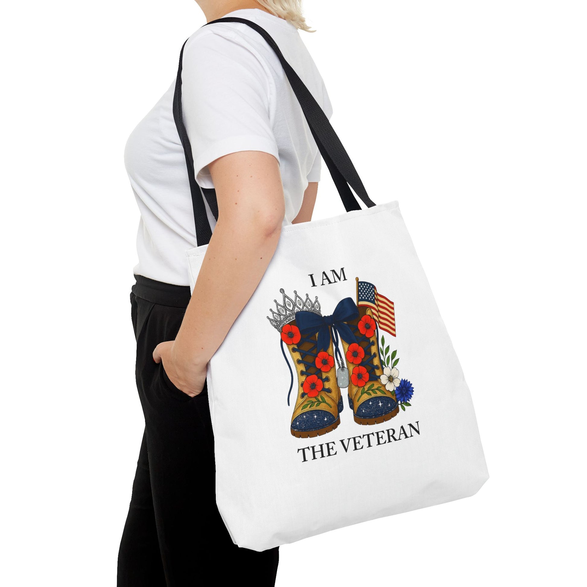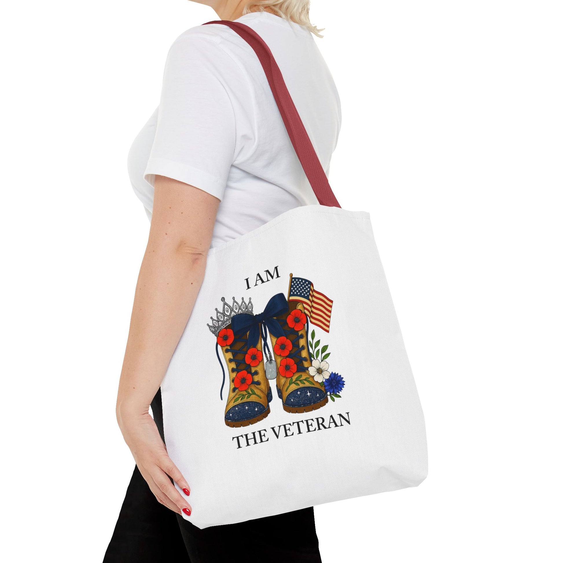 Female veteran tote bag eco friendly gift for self or veteran celebration event reusable canvas bag I am the Veteran design
