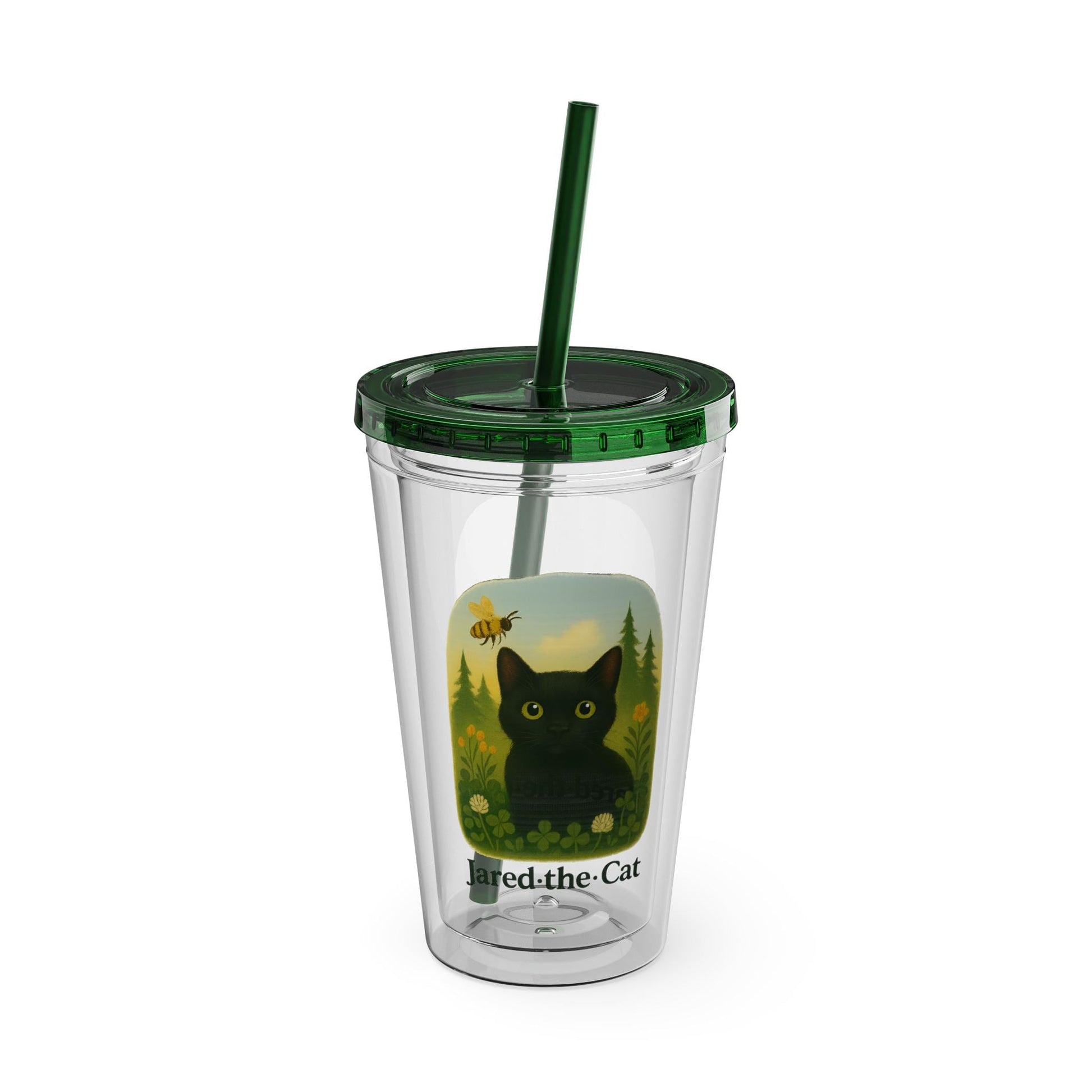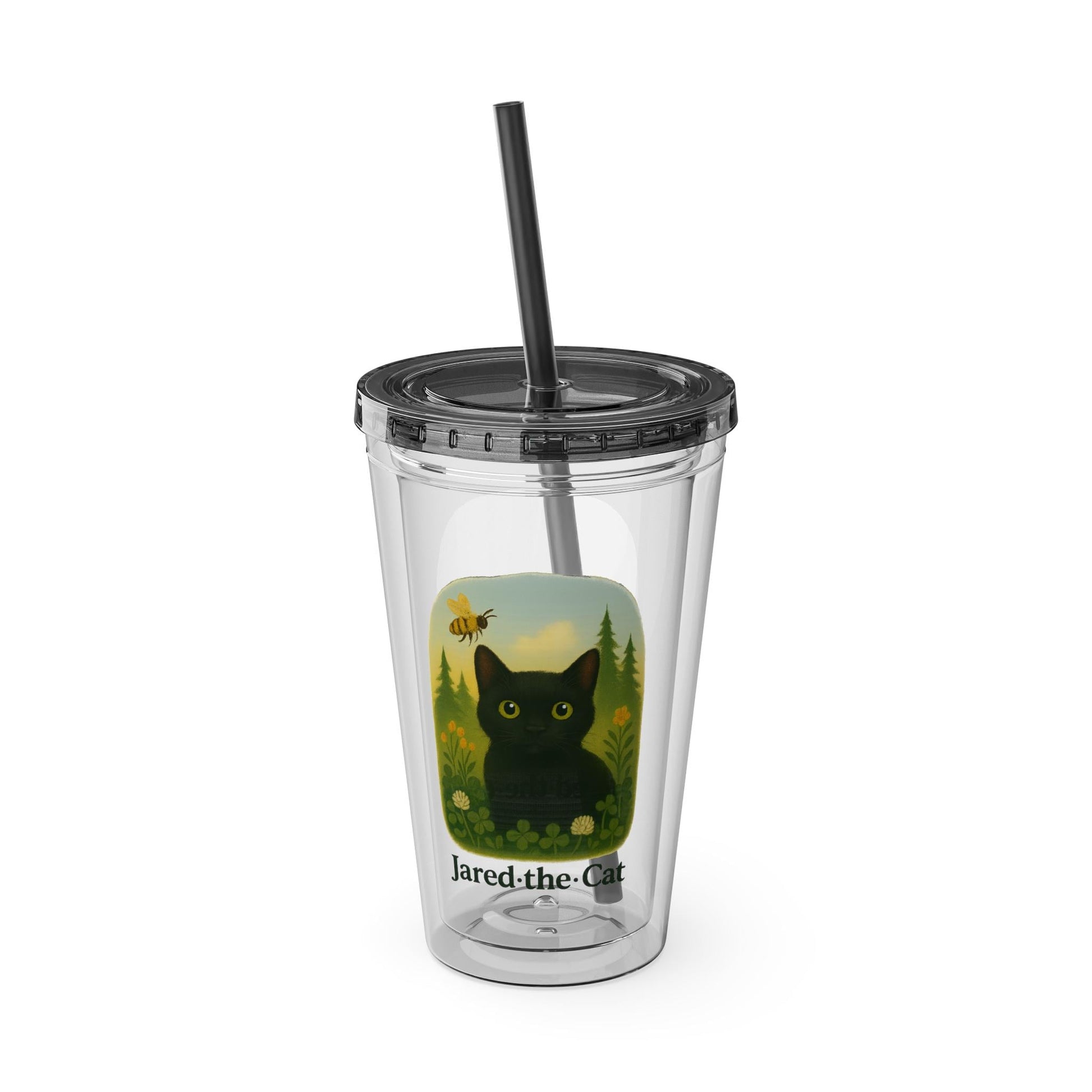 Jared.the.Cat collection, 16oz Drink Holder, Eco-Friendly Travel Cup, Cute Cat Design, Personalized Gift for Cat Lovers, BPA-free acrylic
