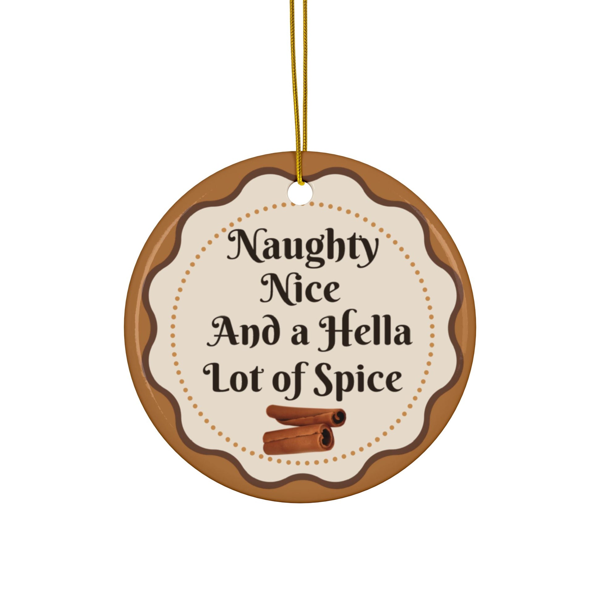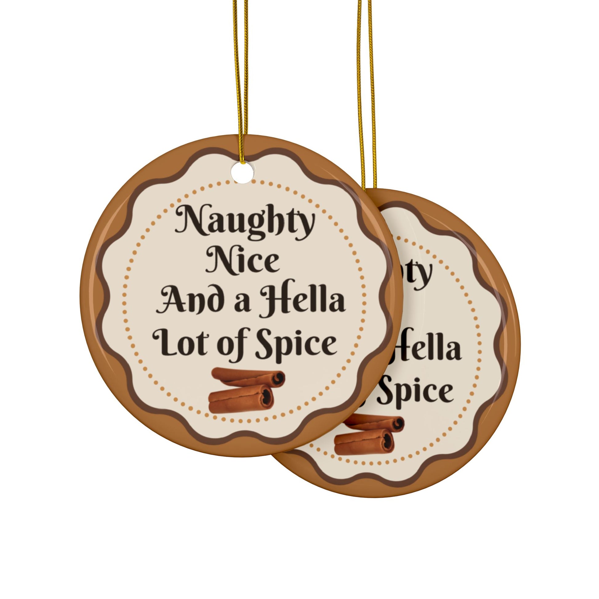 Naughty Nice and a Hella Lot of Spice Ornament, Funny Holiday Gift for Her, Gingerbread Cookie Christmas Decor, Cinnamon Pun Ornament