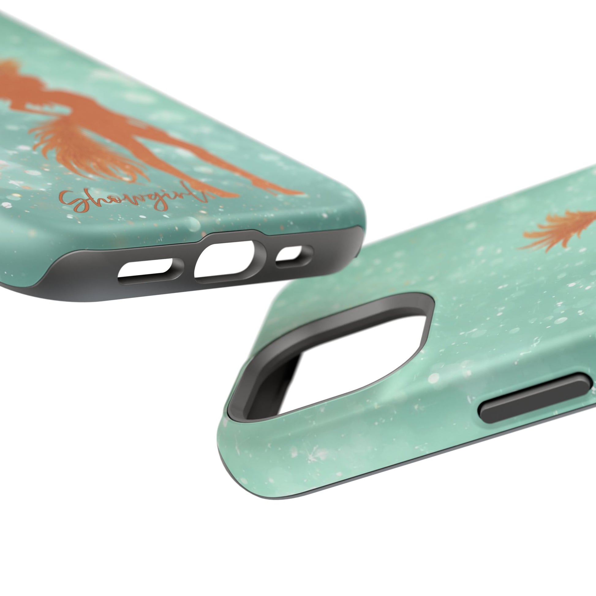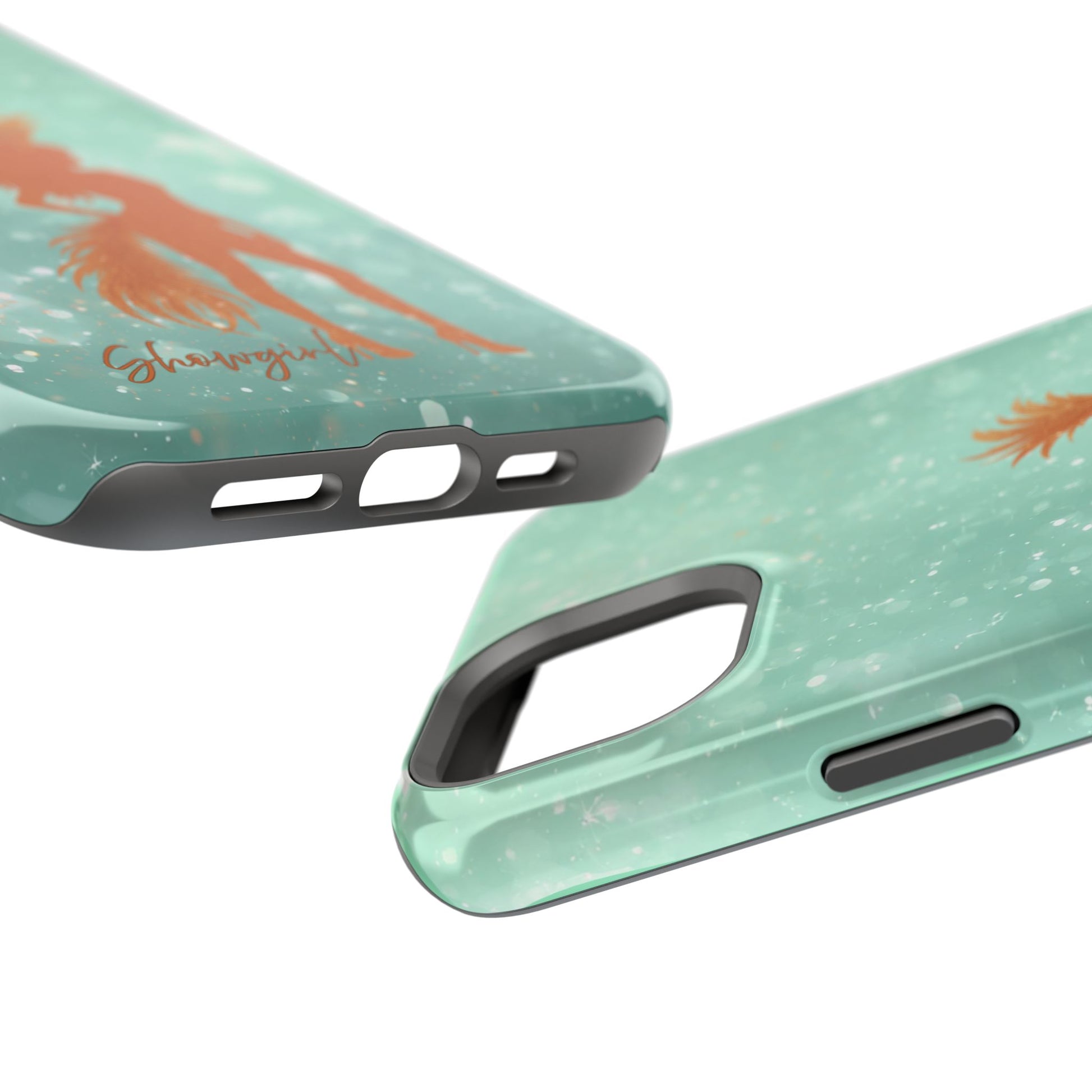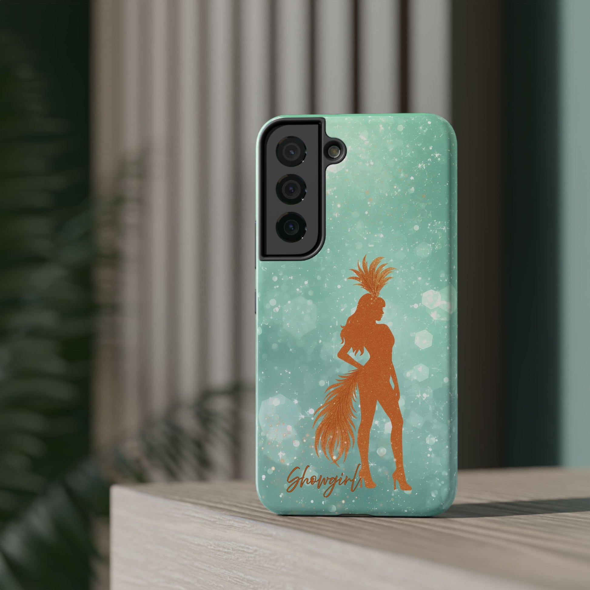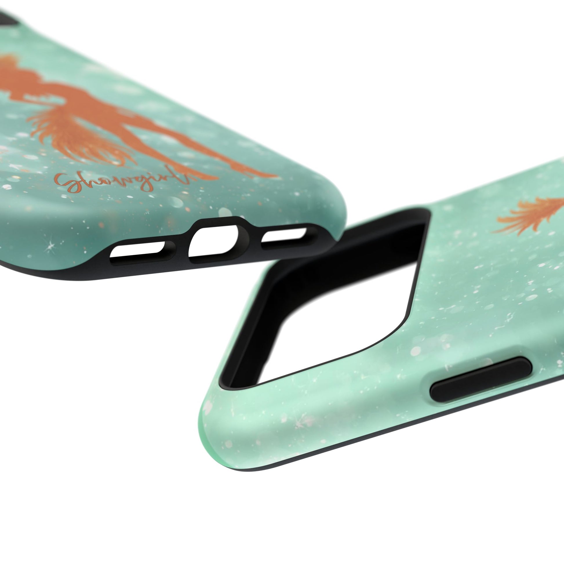 Sparkling Showgirl Silhouette Phone Case, perfect for fashion lovers looking for a glamorous and cute accessory. A great gift for birthdays and holidays, this impact-resistant case protects your phone with style. Suitable for adults.
