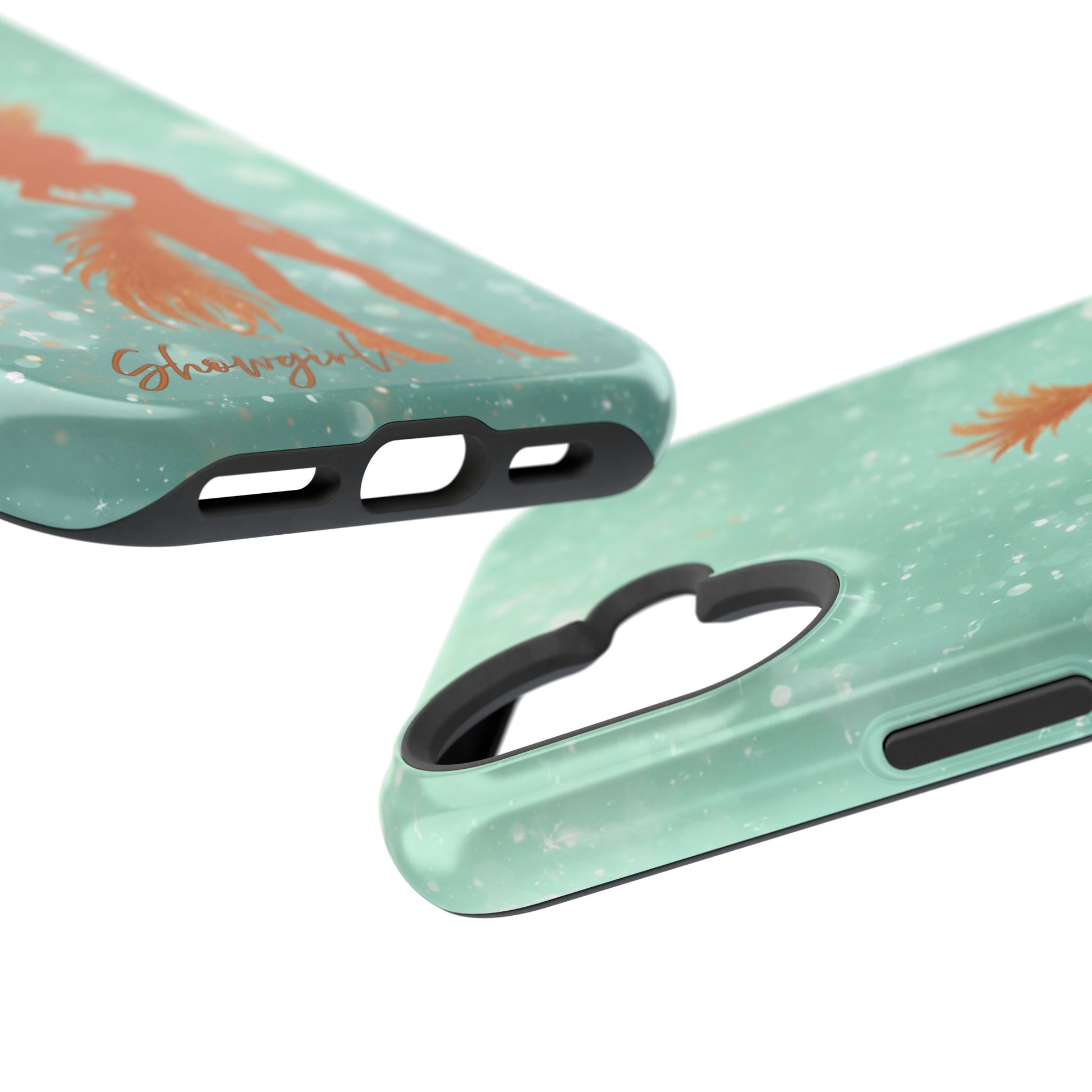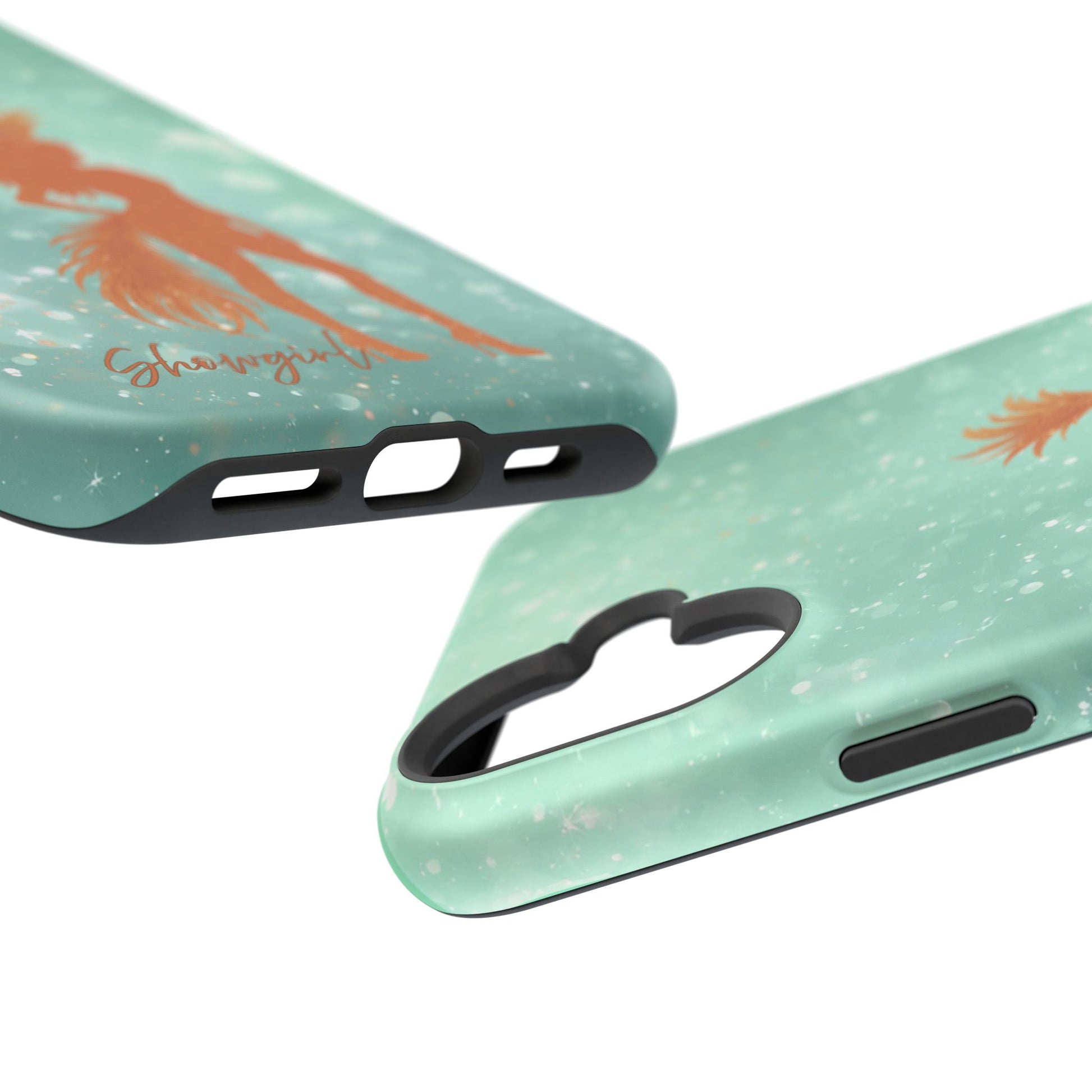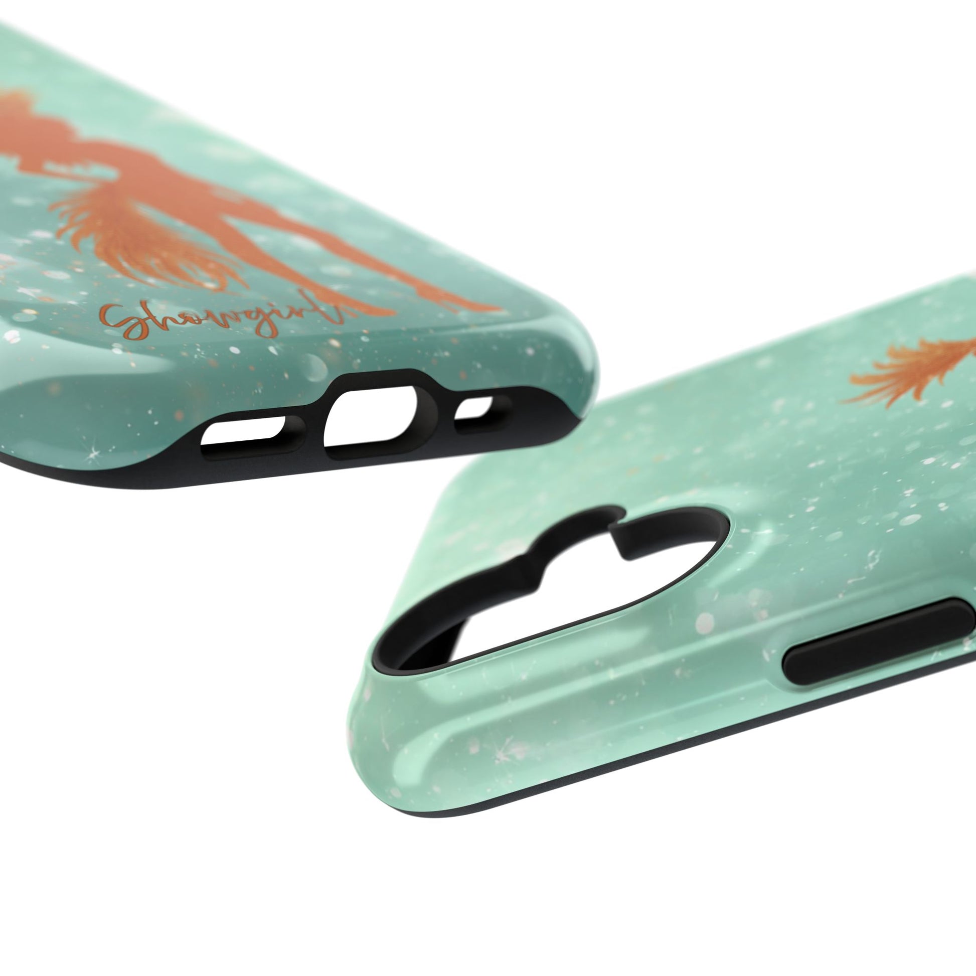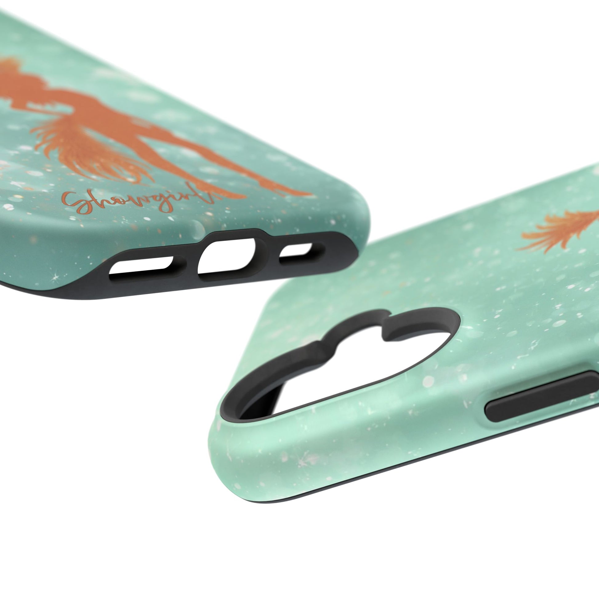 Sparkling Showgirl Silhouette Phone Case, perfect for fashion lovers looking for a glamorous and cute accessory. A great gift for birthdays and holidays, this impact-resistant case protects your phone with style. Suitable for adults.