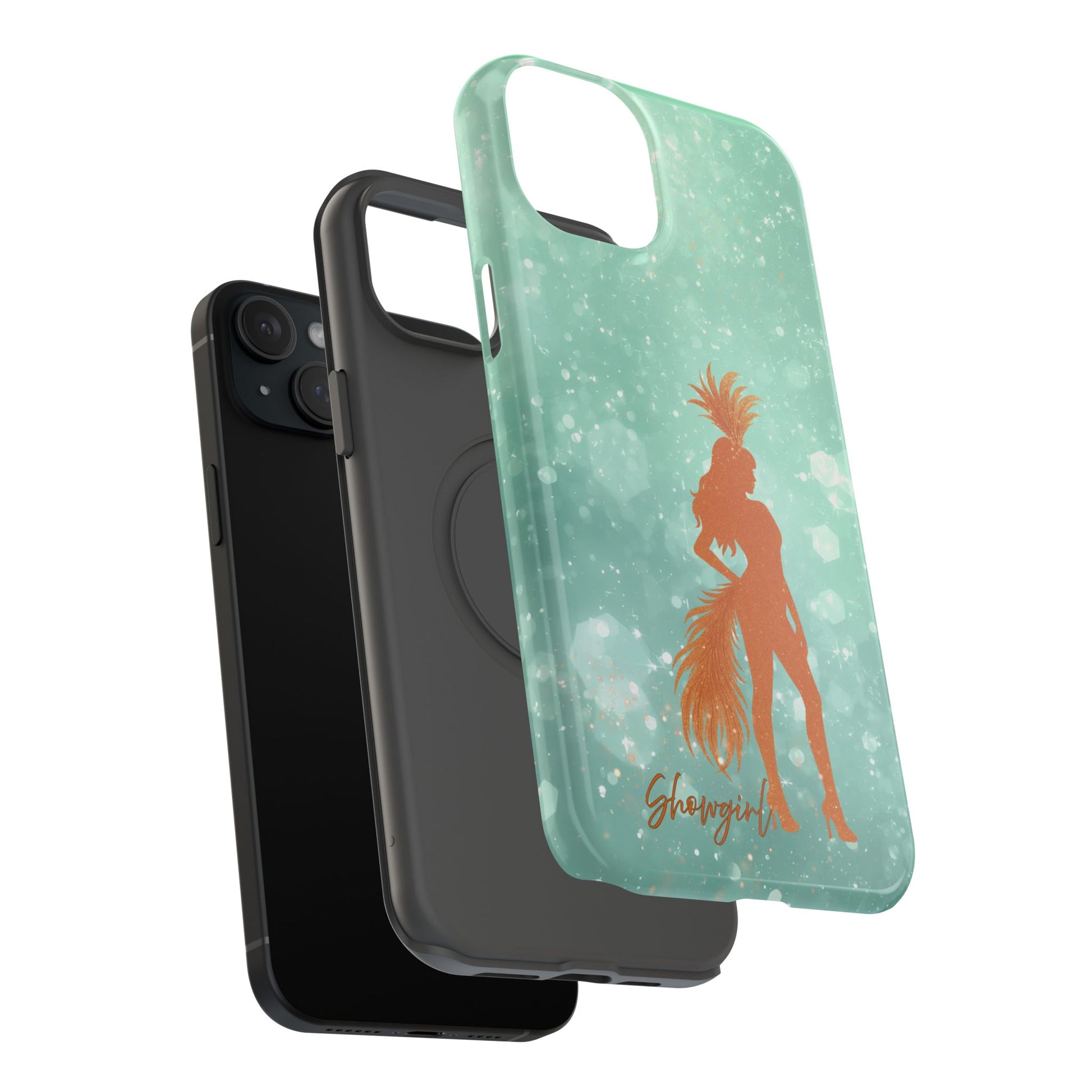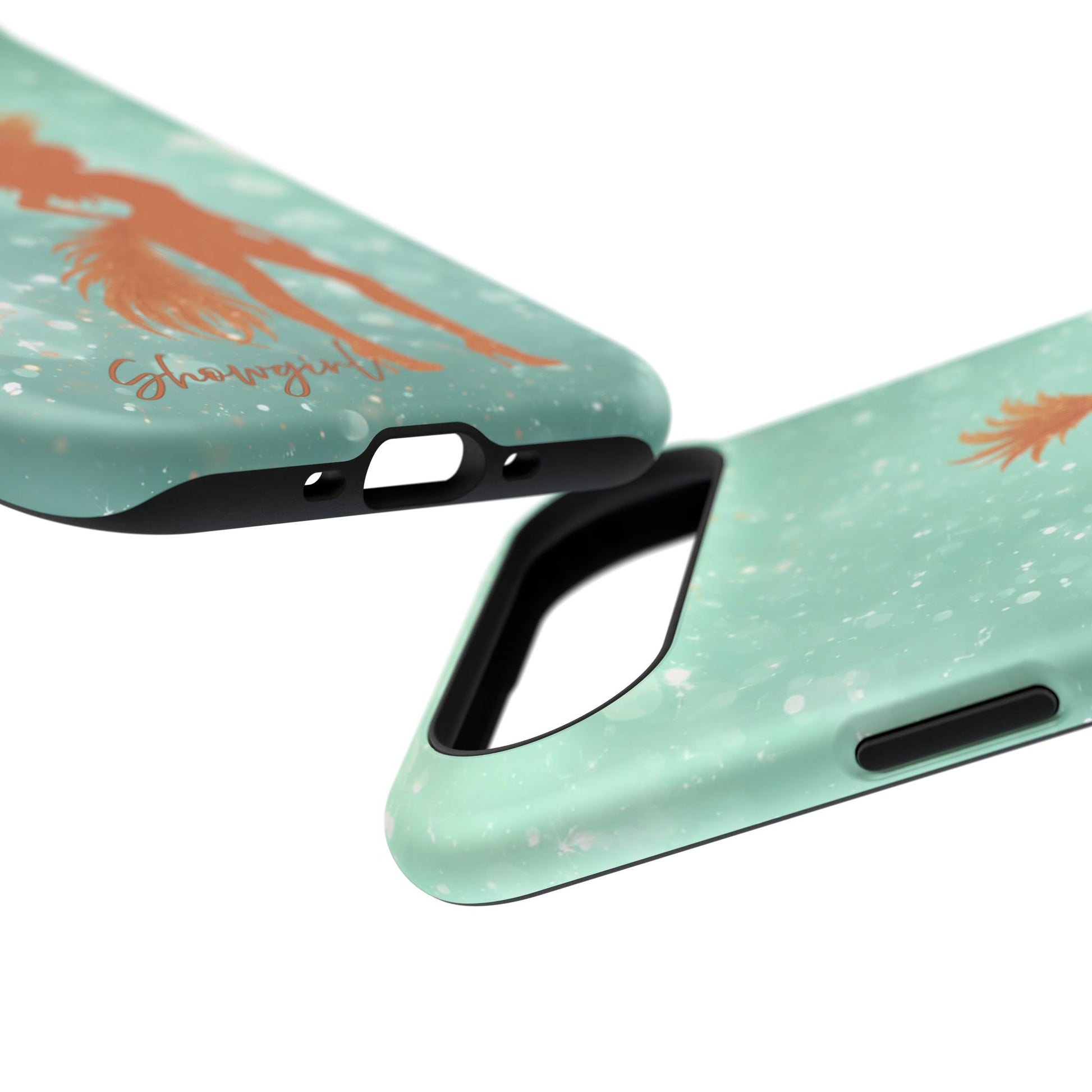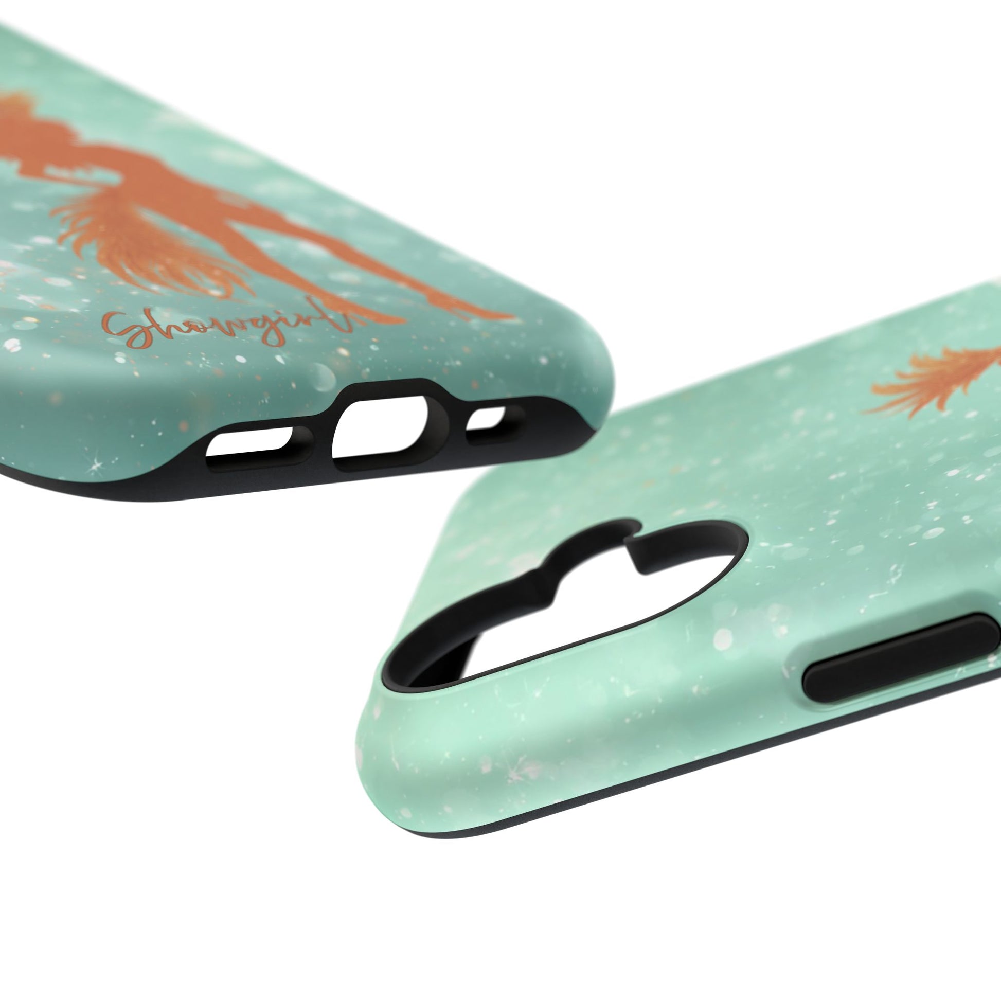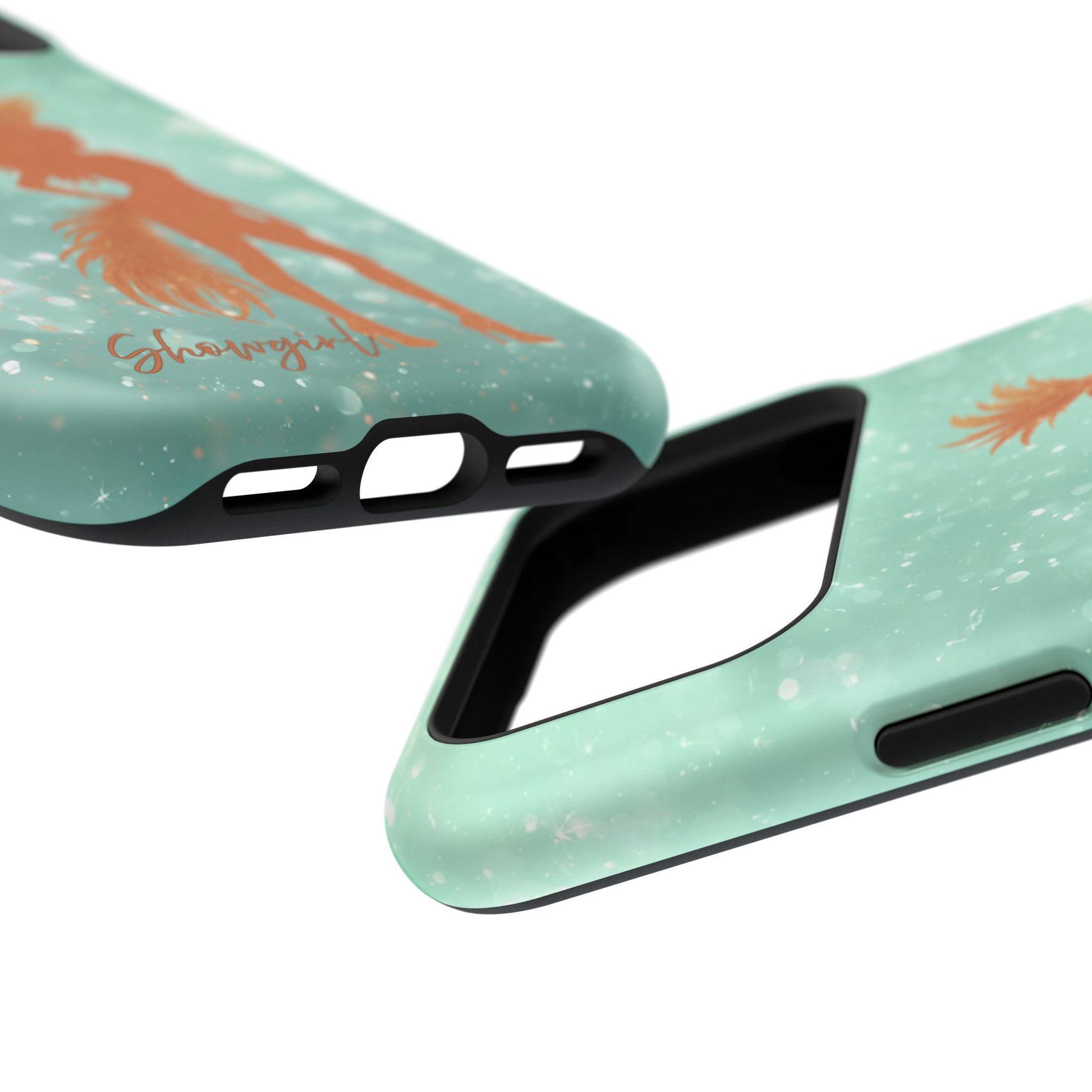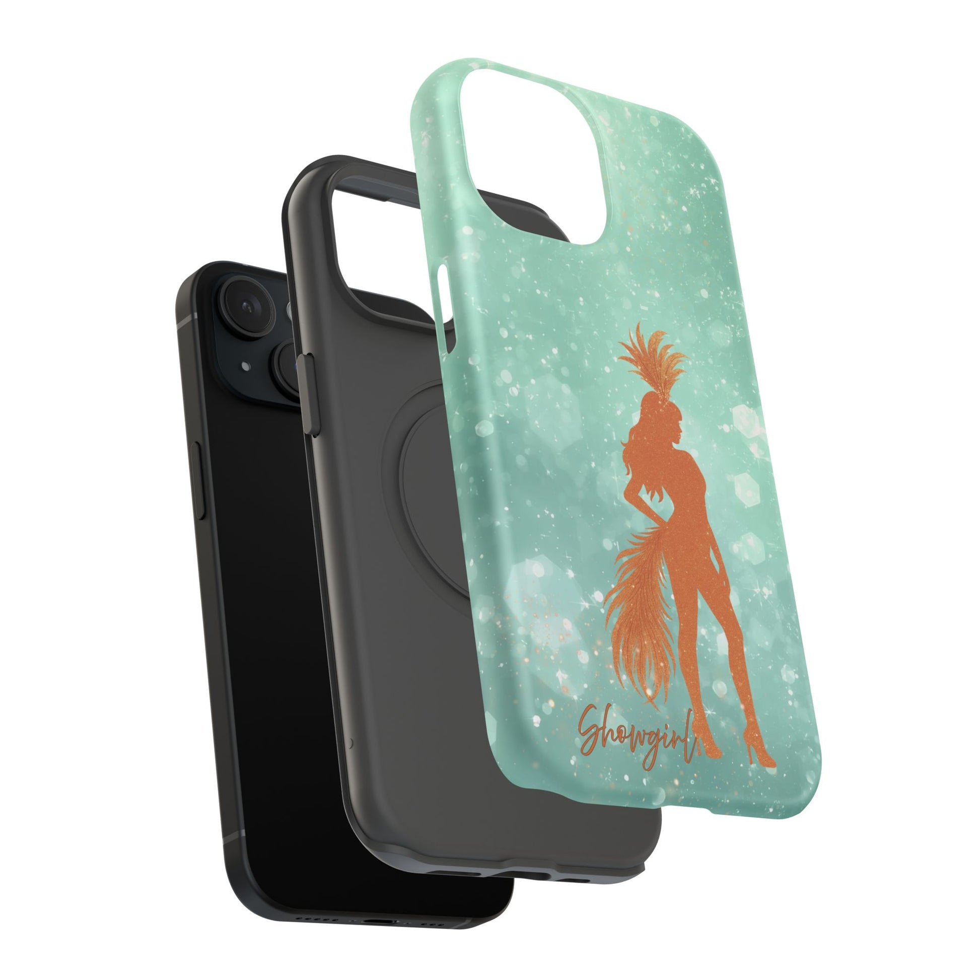 Sparkling Showgirl Silhouette Phone Case, perfect for fashion lovers looking for a glamorous and cute accessory. A great gift for birthdays and holidays, this impact-resistant case protects your phone with style. Suitable for adults.