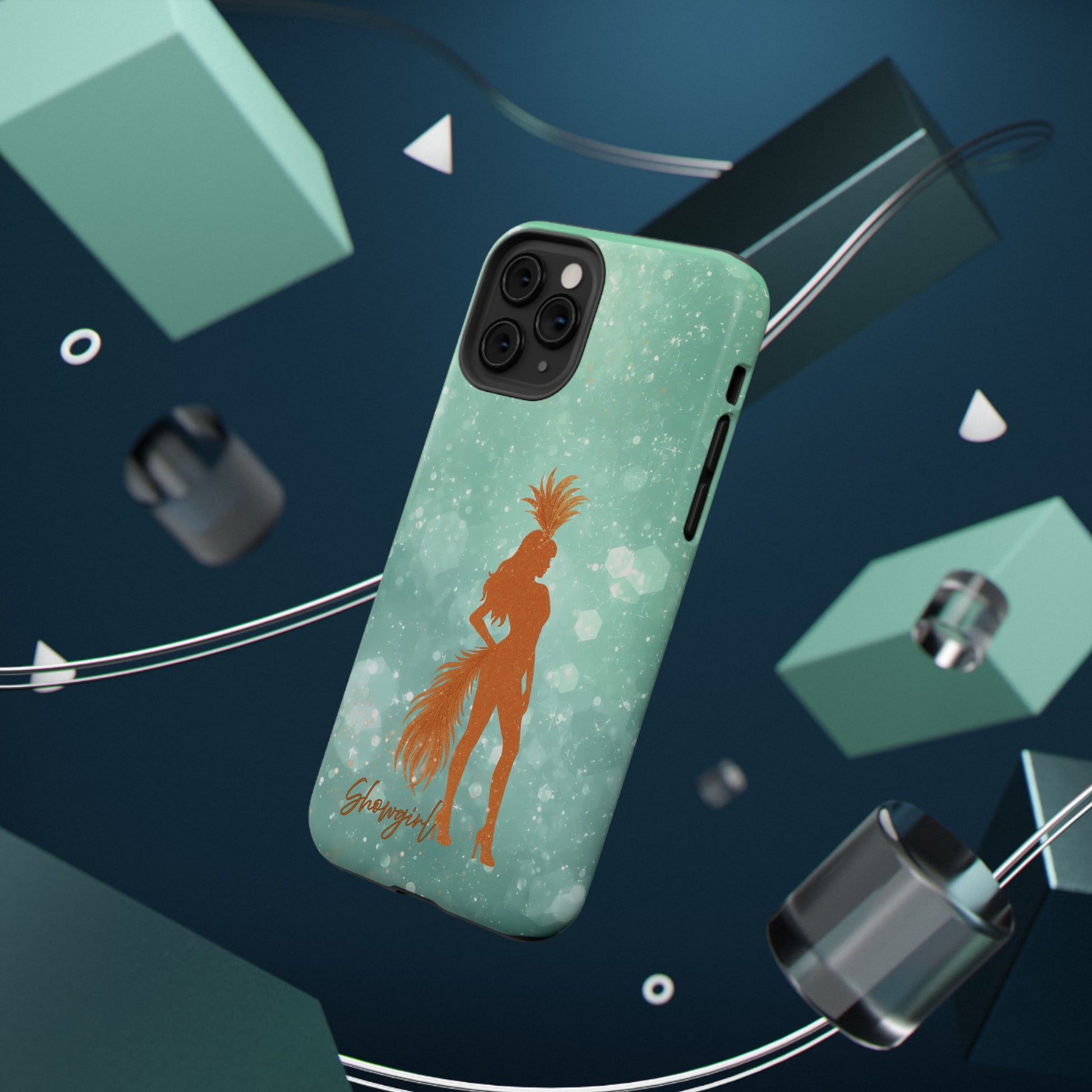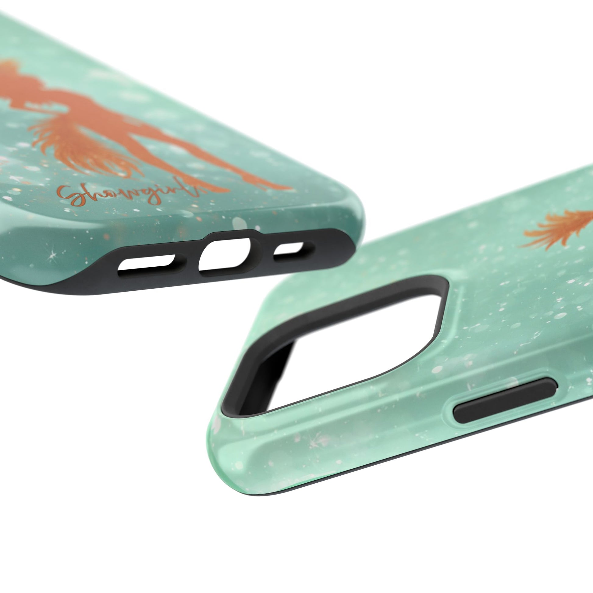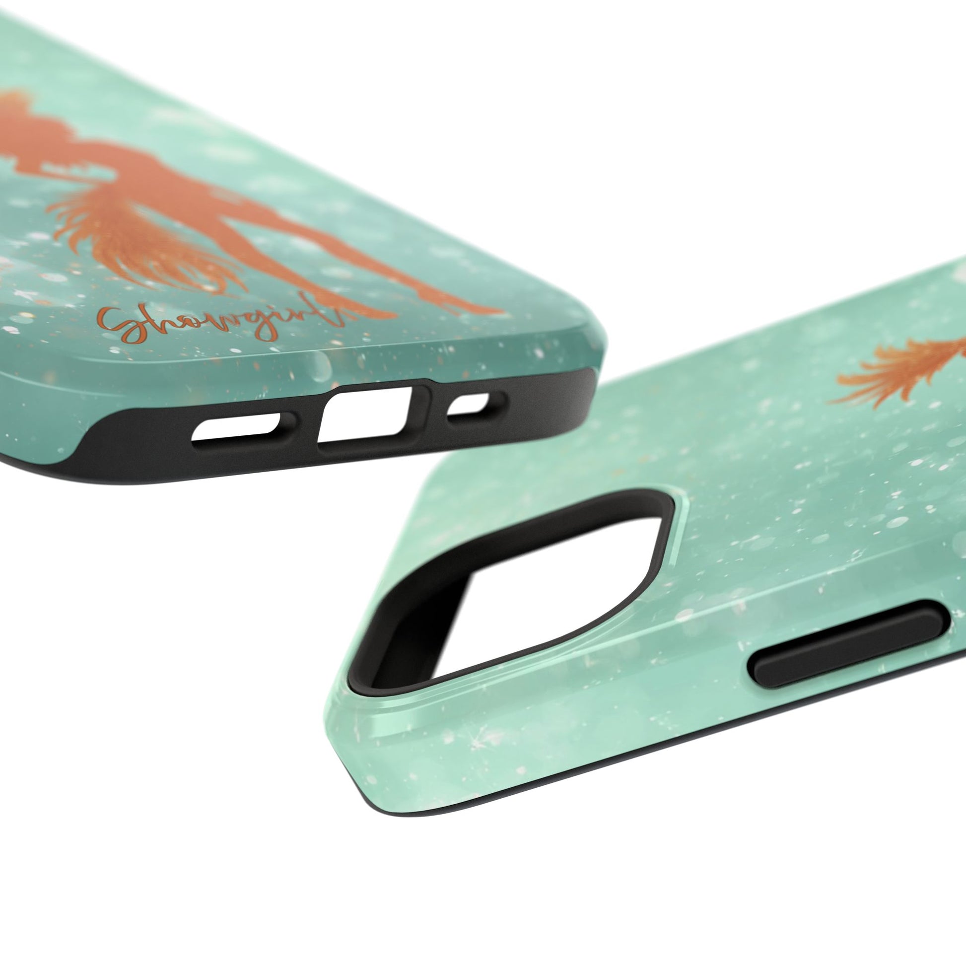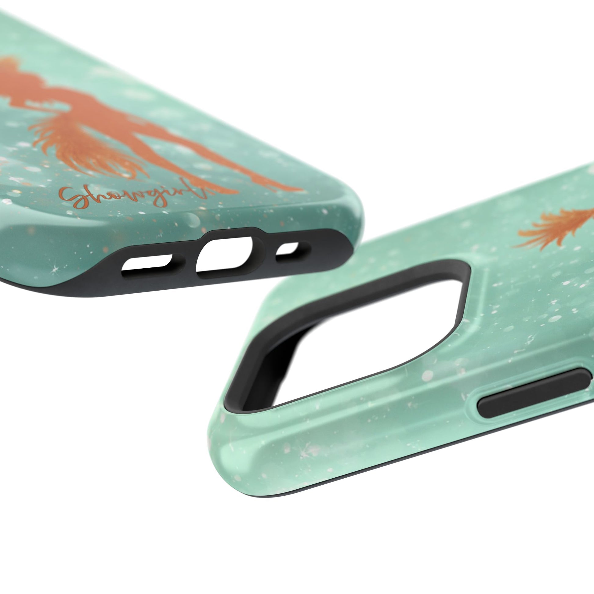 Sparkling Showgirl Silhouette Phone Case, perfect for fashion lovers looking for a glamorous and cute accessory. A great gift for birthdays and holidays, this impact-resistant case protects your phone with style. Suitable for adults.