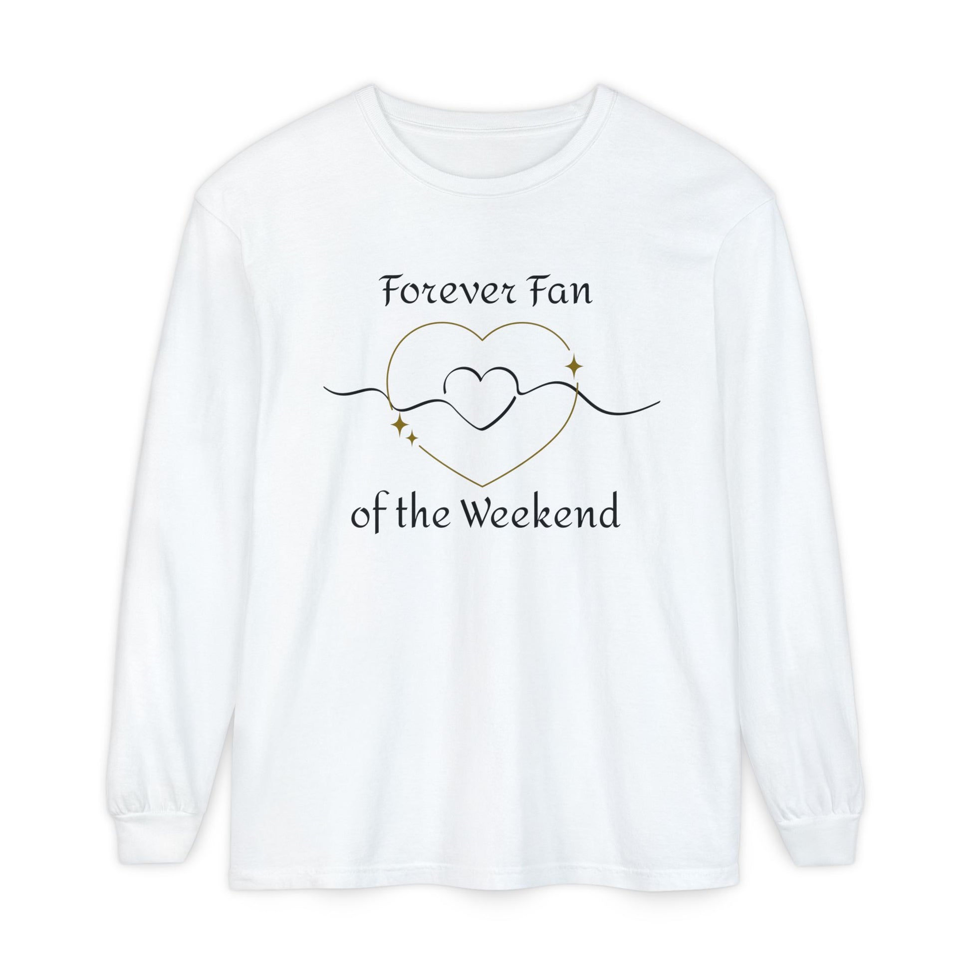 Stay cozy all weekend long with this Forever Fan of the Weekend Long Sleeve T-Shirt. The relaxed fit and comfort colors make it the perfect gift for weekend lovers. This gender-neutral tee is ideal for everyday wear, providing a cozy and laid-back vibe. It is relevant for adults looking for a comfortable and stylish weekend attire, perfect for casual outings, relaxing at home, or running errands. This T-Shirt is suitable for holidays, weekends, leisurely activities, and gift-giving occasions.
